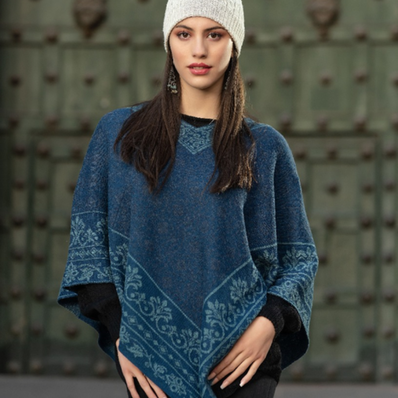 Clásico y sofisticado, este poncho de baby alpaca se distingue por sus grecas finamente tejidas. Una prenda ligera, cálida y versátil que refleja la esencia de los Andes con un estilo atemporal.